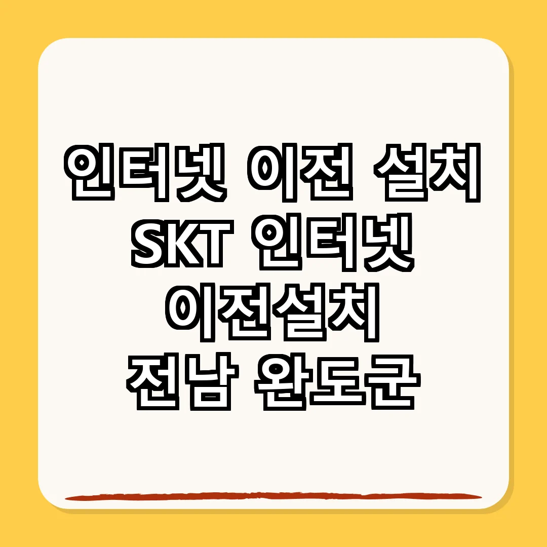 전남 완도군에서의 인터넷 이전 설치는 이사 시 필수적으로 고려해야 할 요소입니다. 필요한 정보를 미리 확인하고 준비하여 새로운 집에서도 원활한 인터넷 사용을 보장하세요.