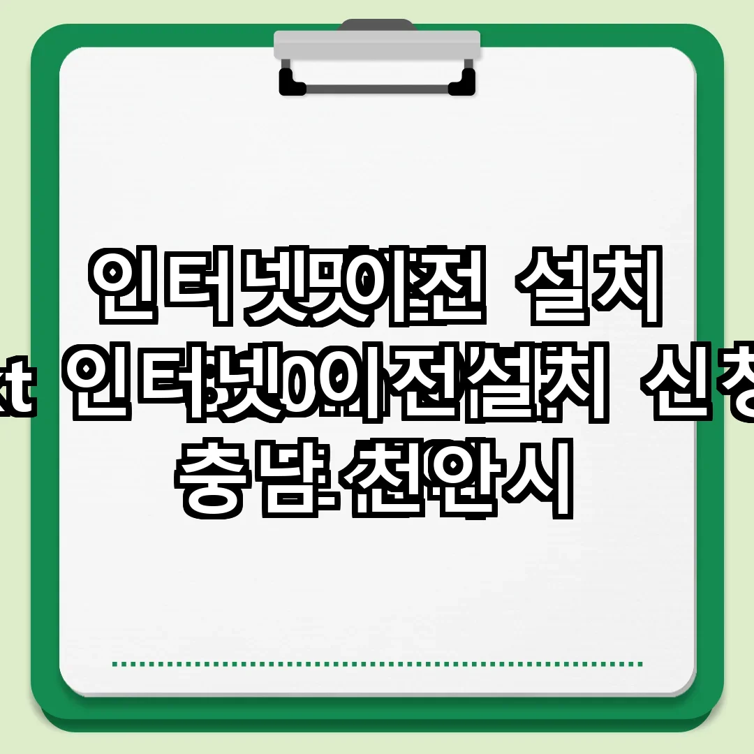 인터넷 이전 설치는 이사 후 원활한 인터넷 사용을 위해 필수적인 과정입니다. 천안시 동남구에 거주하는 경우, 인터넷 대리점을 통해 신속하게 이전 설치를 진행할 수 있습니다. 사전에 인터넷 서비스 제공업체의 설치 절차를 이해하고, 필요한 서류 및 장비를 준비하는 것이 중요합니다. 또한, 천안시 동남구 내의 인터넷 대리점에서는 다양한 요금제와 혜택을 제공하므로, 선택 시 신중한 비교가 필요합니다. … 더 읽기